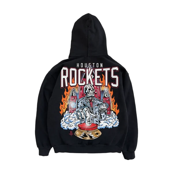 Durability is another key feature. The stitching is strong and secure, the fabric retains its shape after repeated washes, and the black color stays deep and rich. The graphic remains sharp, bold, and visually striking, ensuring that the hoodie continues to make a statement over time. Rockets Launch Site Hoodie Black.